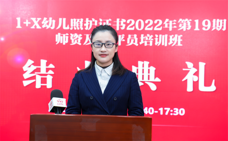 结业典礼上,金职伟业董事长助理兼品牌运营总监周娟向圆满完成各项培训任务的参训老师表示祝贺,并强调,金职伟业将不遗余力地完善并创新幼儿照护领域的标准、课程、服务、教材体系,积极协助各大院校逐步推进1+X证书制度试点工作,全力推动幼儿照护人才培养质量高发展。
