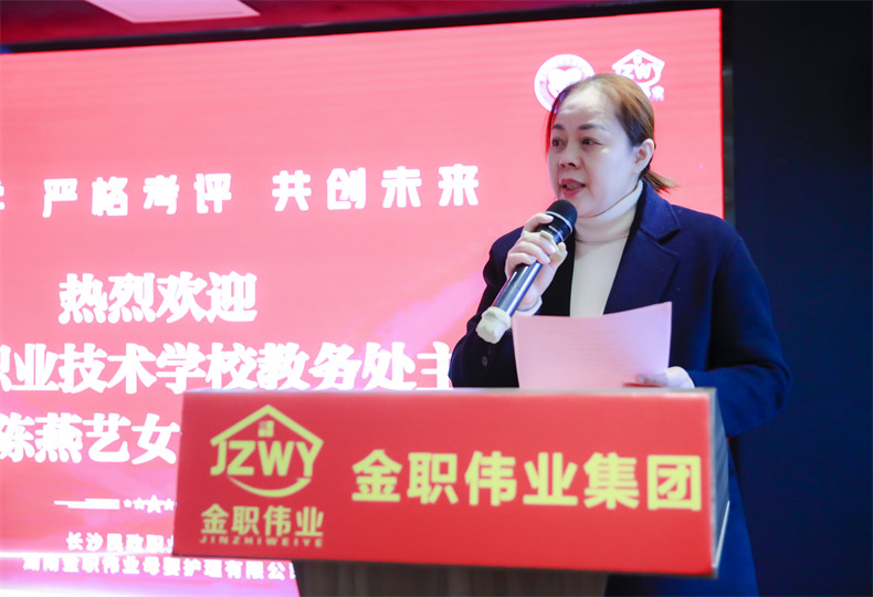 典礼伊始,长沙市卫健委人口家庭处谢靖处长进行致辞。他主要分享了以下三点内容:一是感谢国家好政策,托育行业迎来了发展的春天;二是面对市场强烈的托育服务需求,托育行业大有可为,从事幼儿保育、托育服务与管理等相关专业的老师与学生都将大有作为;三是期盼所有老师能够知行合一、学以致用,顺利推进学校1+X幼儿照护职业技能等级证书工作的开展。