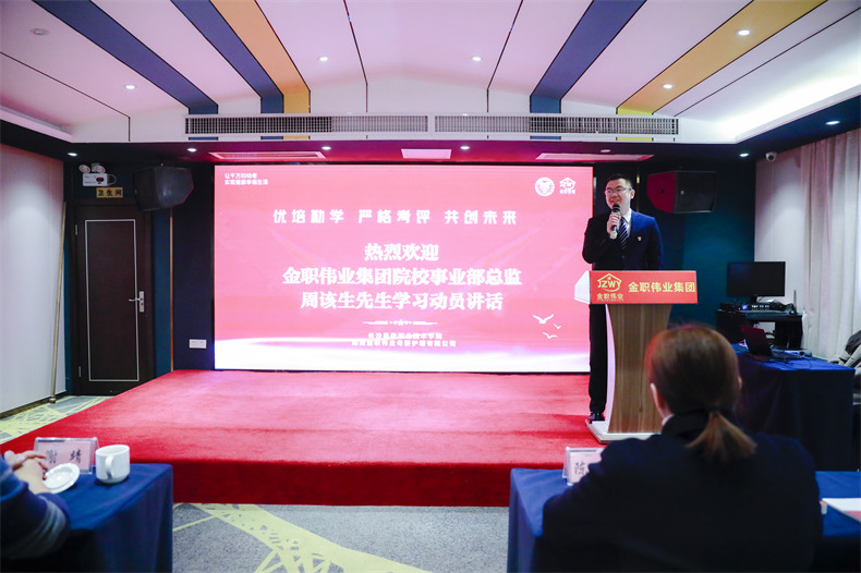 最后,金职伟业院校事业部总监周该生作培训动员。他要求,全体参培人员要努力听课、主动思考,深刻领会和掌握各位专家授课的内容、方法,把学到的知识应用到工作实践中去,确保学有所思、学有所悟、学有所成。“希望各位老师能集中心思学习,积极参与讨论和互动,确保培训取得实效。”