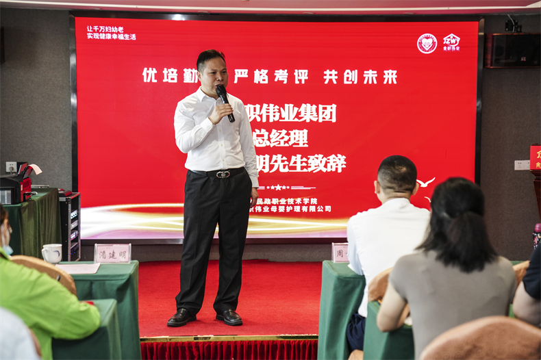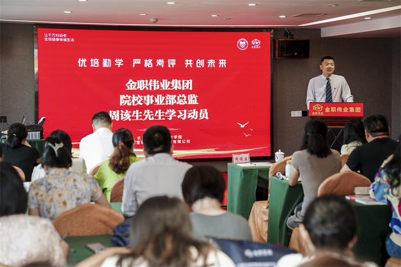 最后,金职伟业院校事业部总监周该生为本次培训作学习动员。“当前我国生育率正呈现下降趋势,其中一个最突出的原因就是托育服务供给不足。而1+X幼儿照护证书的全面推广,预示着越来越多高素质技术技能人才走出校园,走上工作岗位,这将是破解人才培养供给侧与产业需求侧矛盾的有效举措。”周该生希望,所有参训学员能潜心提升,学用结合,全面推动1+X证书制度试点工作,赋能幼儿照护人才培养。