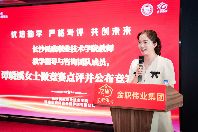 同时,遵循“技能互补,以赛促教”原则,贯彻“做中学、做中教、教学做一体”的教学理念,结业典礼当天,金职伟业组织开展了教师教学能力竞赛,各参赛队伍以积极向上的态度认真备课,用说课与实操的方式诠释赛题,全力展示了学习成果。长沙民政职业技术学院教师教学咨询与指导团队成员、金职伟业特聘专家谭晓溪详细点评了各参赛队伍表现,并给出了专业性改进建议。