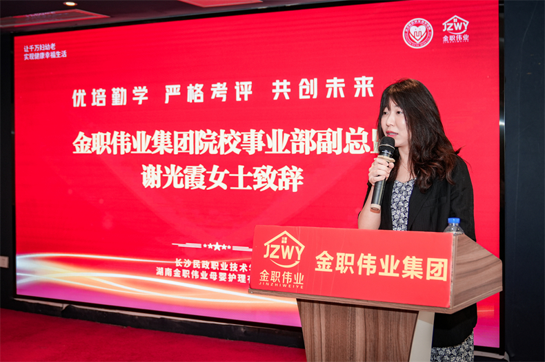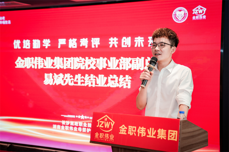 结业典礼最后,金职伟业院校事业部副总监易斌作总结发言,他提到,金职伟业多年来深耕职业教育,积极助力“三教”改革,在教师方面,被遴选为第二批职业教育教师企业实践基地,并成功申报8个教师企业实践项目;教法方面,积极开发智能仿真幼儿、婴幼儿照护混合现实训练系统(MR)等智慧职教产品;教材方面,聚合各方专家学者,对标国家规划教材标准,建设课证融通教材,并融入行业新工艺、新规范,以赋能书证融通。“未来,金职伟业也将牢记使命,凝心聚力,全面协助各院校试点工作的开展,为职业教育高速发展的明天积蓄力量。”