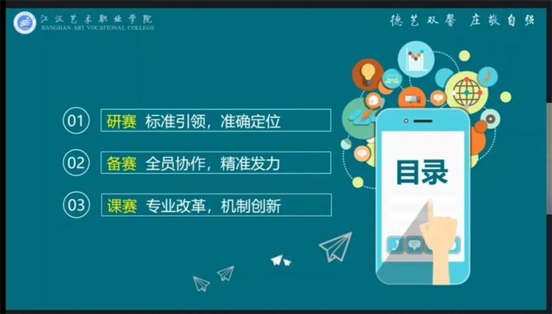 她提到,研赛要标准到位、准确定位,针对国赛在名称、参赛对象、题型、技术规范与内容和分值等方面发生的变化,她认为应及时调整研究方向、定位大赛重点、制定相应大赛方案。谈到如何厘清备赛思路,她表示,不仅要多次观摩对手的比赛视频,研究学习对手的长处,还要进行自我反思,提升自身技能。