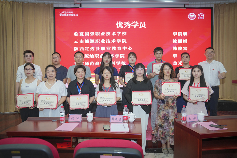8月11日,1+X幼儿照护及产后恢复2023年第五期考务技术及督导员培训班圆满收官,15位老师获评“优秀学员”,9位老师获评“优秀学生干部”。