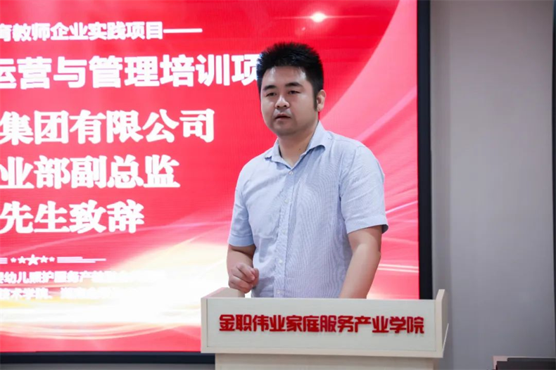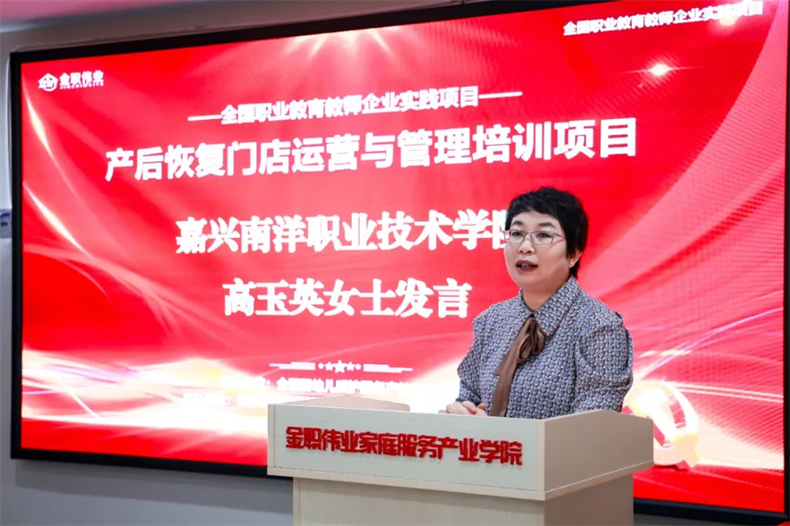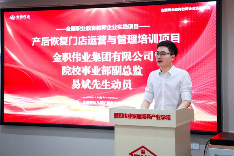 为加快推进“双师型”教师队伍建设,8月15日,2023年全国职业教育教师企业实践项目——产后恢复门店运营与管理培训项目正式启动。嘉兴南洋职业技术学院高玉英,金职伟业院校事业部副总监刘伟、易斌出席开班典礼并发表讲话。