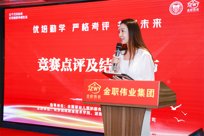 湖南省普通高校教学能手、金职伟业特聘专家胡蓉充分肯定了各参赛队伍的表现,并提出了三点建议:其一,精准选点进行教学设计;其二,层层剖析知识点,多层次全方位进行教学展示;其三,利用优质的教学素材来优化教学效果。
