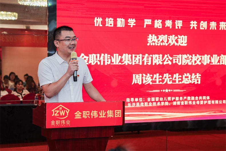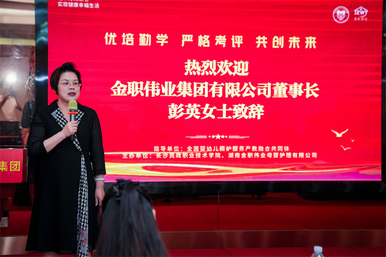 结业典礼伊始,金职伟业董事长彭英对各位老师顺利结业表示祝贺,她表示,金职伟业将坚定不移贯彻“让千万妇幼老实现健康幸福生活”的企业使命,扎实建立健全职业教育教师培养培训体系,加大“双师型”教师培养力度,为培养技能型人才提供有力支撑。