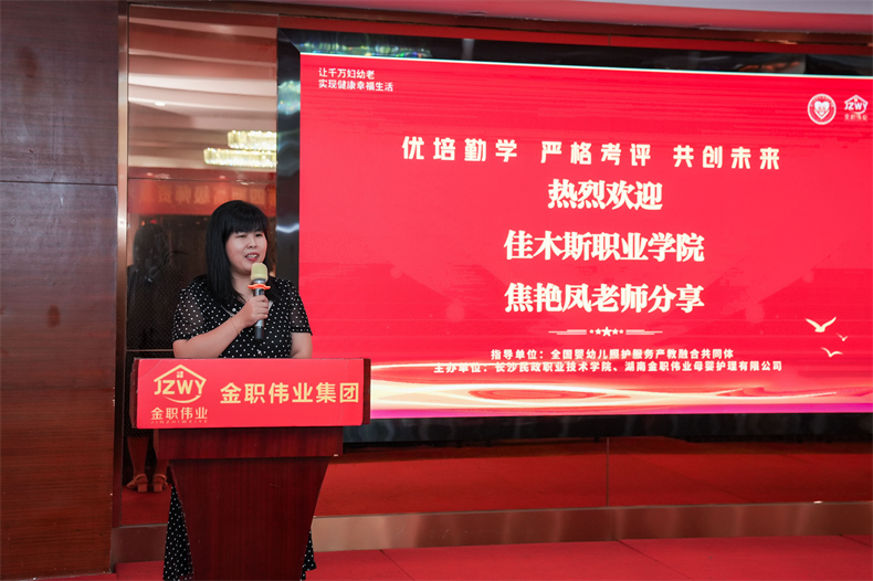 济南职业学院陈宁老师作为优秀学员代表分享学习感受,她提到,自2021年以来,学校多次组织1+X幼儿照护证书考评工作,从课程培训到考核实施,真正做到了严谨、规范、高效。“而通过考评工作的开展,我们也发现,证书的学习与应用不仅能有效提高学生的实践能力和职业素养,也能使学生更好地适应岗位需求。”佳木斯职业学院焦艳凤老师感谢金职伟业对此次培训的高度重视和精心组织,她表示,将带着此行的收获与感悟,带着满腔热情回归工作岗位,将所学的理论转化为自己的教学实践,为提高婴幼儿照护技能人才服务能力和水平贡献力量。