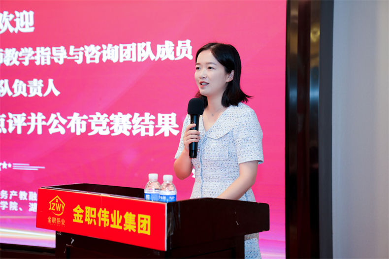 为全面深化“育训结合”,结业当天,金职伟业组织开展了教师教学能力竞赛,邀请长沙民政职业技术学院教师教学指导与咨询团队成员谭晓溪等资深专家担任竞赛评委,并作点评。