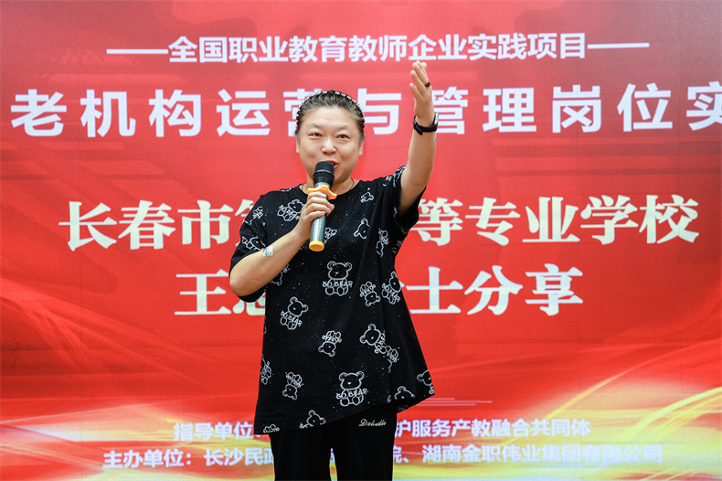 结业典礼上,钟山职业技术学院查富芹老师对提供这次宝贵实践机会的金职伟业表示感谢,长春市第二中等专业学校王忠玲老师分享道,“此次岗位实践是一次难忘的经历,我会将所学、所感分享给我的学生,让她们坚定职业信念,全身心投入到养老护理行业,实现人生价值。”