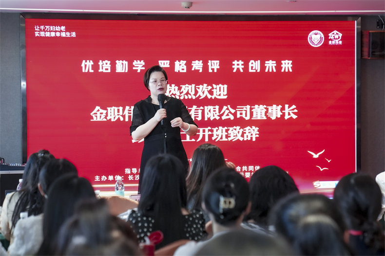 开班典礼伊始,金职伟业集团有限公司董事长彭英率先发表讲话,她对各位老师的信任与支持表示感谢,并分享了金职伟业作为职业教育培训评价组织,在推进岗课赛证融通、教材与平台开发、标准建设、人才培养、产业学院建设、产教融合共同体打造等方面取得的成绩。她表示,金职伟业将充分调动资源,为参训教师打造一个互学互鉴、互助互享的培训平台,为促进职业教育发展贡献力量。