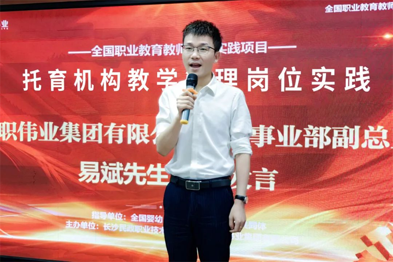 9月14 日,2023年全国职业教育教师企业实践项目——托育机构教学管理岗位实践项目圆满结业。金职伟业集团有限公司(以下简称“金职伟业”)董事长彭英、院校事业部副总监易斌出席结业典礼。