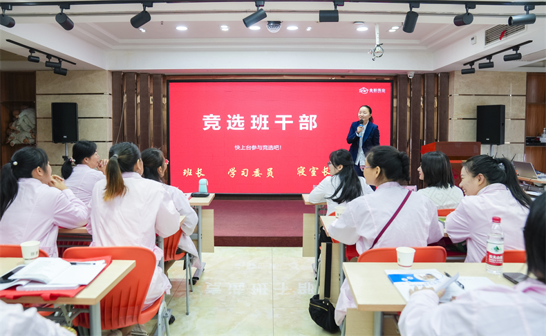 值得一提的是,典礼上还进行了班干部竞选环节,竞选现场气氛热烈,王锡芳与学员们共同确定班长、学习委员、劳动委员与寝室长人选。王锡芳详细介绍了班干部职责、班级管理制度、寝室管理制度、考勤纪律与仪表规范,希望班干部们以身作则、尽职尽责,共同携手,为学员们营造一个良好的学习氛围。