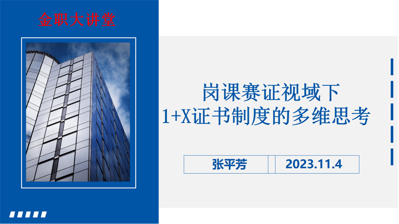 金职大讲堂第99讲丨岗课赛证视域下1+X证书制度的多维思考