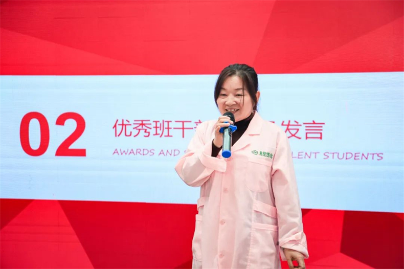 典礼上,熊筱燕获评优秀班干部、优秀学员并发言。她感谢了金职伟业授课老师的精心授课并分享了自己的学习感受。她谈到,在培训期间,理论与实践相结合的教学模式让她熟练掌握了系统性的母婴护理技能,也让她逐渐成长为一名专业的月嫂。
