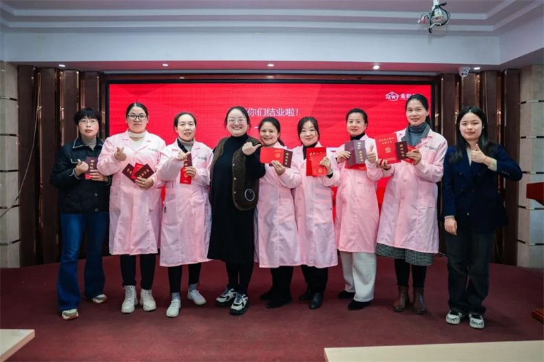 典礼伊始,授课老师彭雪静对学员们的顺利结业表示祝贺,她希望,各位学员能够不辍学习,夯实专业基础,努力提升自己的专业技能,为下一步参加国考做足准备。同时,她鼓励大家积极就业,将自己的专业技能应用于实际,用爱心、细心、耐心服务好每一位新生儿与产后妈妈。