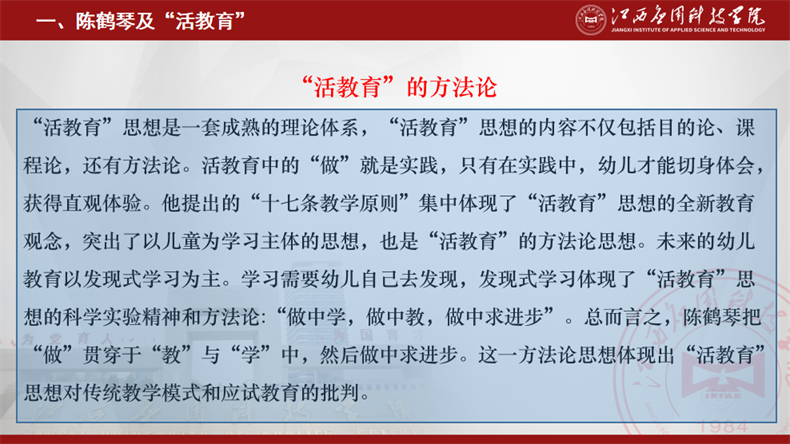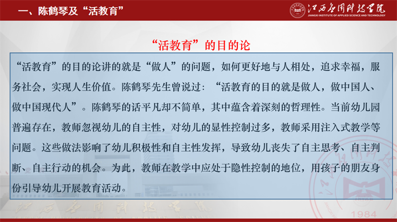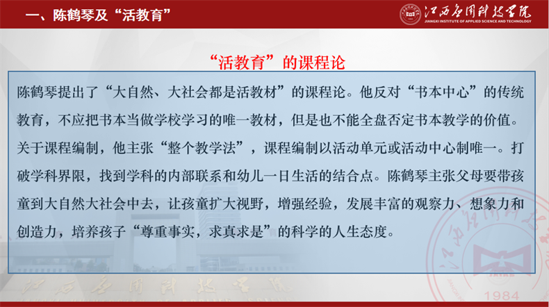 金职大讲堂第103讲丨陈鹤琴“活教育”理论的师范教育启示