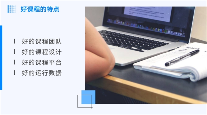 杨丰谈到,一门好的课程应该包含‘四好’:好的课程团队、好的课程设计、好的课程平台、好的运行数据。“好的课程团队,要在团队梯度上教授、副教授、讲师结合,由名师担任学术总策划,跨校共建,助教全程跟进;好的课程设计要以学生为中心,资源配置合理,遵循教育教学规律,反映学科最新成果,无危害国家安全、涉密及其他不适宜网络公开传播的内容;好的课程平台要具有稳定性、易用性、互动性、多样性、安全性、拓展性、数据分析、技术支持属性。”