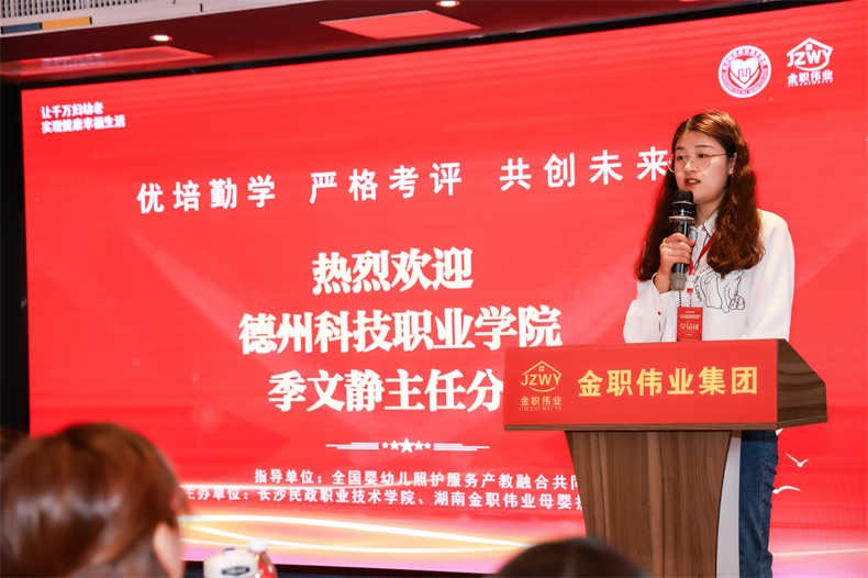 典礼伊始,易斌对老师们坚定地选择了金职伟业、选择幼儿照护证书表示感谢。他谈到,近几年,金职伟业在各位领导和专家老师的支持下,团队规模迅速壮大,服务院校的能力得到了飞跃式提升,与院校开展了标准开发、课程建设、专业建设、社会性服务等方面的合作,取得了标志性的成果。金职伟业期待与更多院校进一步深化合作,共同赋能职业教育高质量发展。