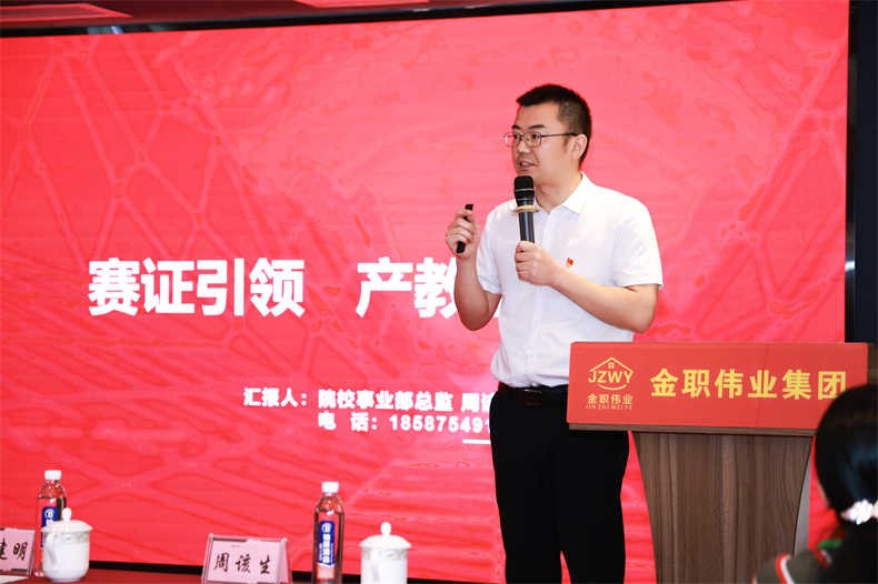 院校事业部总监周该生以“赛证引领 产教融合”为主题分享金职伟业2024年八项重点工作。他表示,金职伟业以院校需求为导向,以赋能教师成长、学生成才为目标,以大赛与证书为抓手,积极开展产教融合实践,持续优化服务院校的能力,助推职业教育高速度高质量发展。他期待,与各院校携手在证书标准升级、职教产品研发、培训项目开发、人力资源开发、职业技能大赛举办、产教深入融合、实体运营中心打造、职教出海等方面加深合作,实现互利共赢。