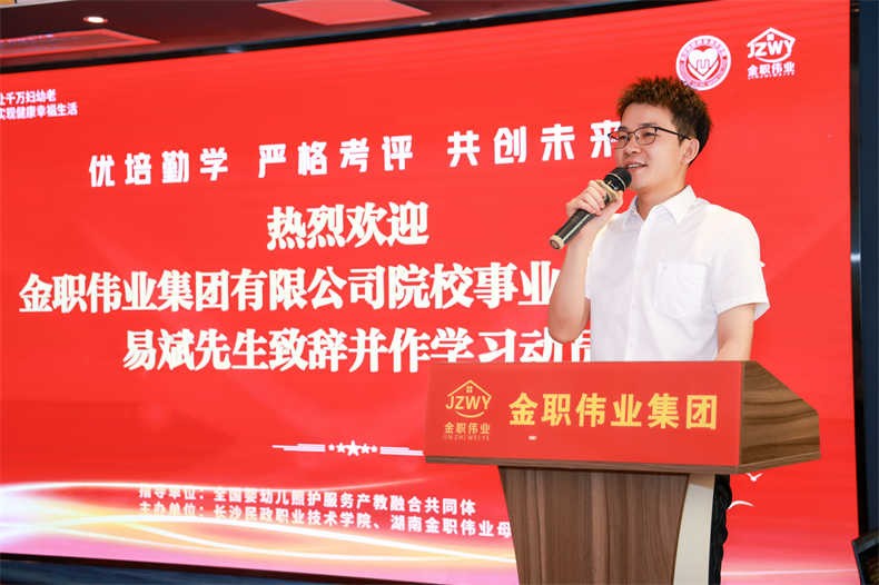 典礼伊始,金职伟业院校事业部副总监易斌对各位老师的到来表示热烈欢迎。“感谢各位专家老师对金职伟业的信任与支持,从大家选择产后恢复证书的这一刻,金职伟业与老师们就此结缘,期待与各位老师共同为产后恢复事业贡献力量,让更多的妈妈享受到专业、贴心的产后护理服务。”他谈到,金职伟业依托两张证书,持续推进证书试点工作,提升证书的含金量与认可度,帮助众多学生走上就业创业的道路上,实现高质量的个人发展。