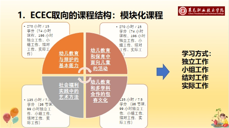周晶教授以芬兰应用技术大学课程结构、课程地图、体验性学习方式为切入点,解析芬兰学前教育人才培养模式,并简要介绍了中芬合作课程方案。她谈到,莱芜职业技术学院在中芬合作课程方案的制定上沿用了芬兰学前教育专业人才培养三个核心课程模块,并在特色价值观的引导上,在教学方案的细化程度、可操作性、可指导性提升上不断精进。