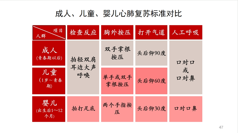 心跳、呼吸骤停院外生存链包含尽早识别、求救,尽早心肺复苏、尽早电除颤、尽早高级生命支持、心搏骤停后的综合救治、康复6个环节,是提高心脏骤停患者存活率、改善神经功能预后的关键。邢涛教授就院外生存链前三个环节,详细讲解了现场救护人员在对成人、儿童及婴幼儿进行施救时的步骤与注意事项。