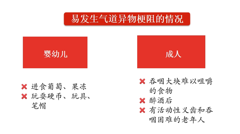 随后,邢涛教授详细阐述气道异物梗阻的成因、临床表现及发生气管异物梗阻时的自救与互救方法。他谈到,气道异物梗阻分为不全梗阻与完全梗阻,完全梗阻时人呈现不能说话、不能咳嗽、不能呼吸的状态,必须立即抢救。成人及大于1岁的儿童在只能采取自救的方式时,可采取腹部冲击法;在给他人进行施救时,应优先进行背部叩击再进行腹部冲击的方法;而当婴儿遭遇气道异物梗阻的情况时,则需要采取背部叩击法及胸部冲击法交互进行的方法应对。