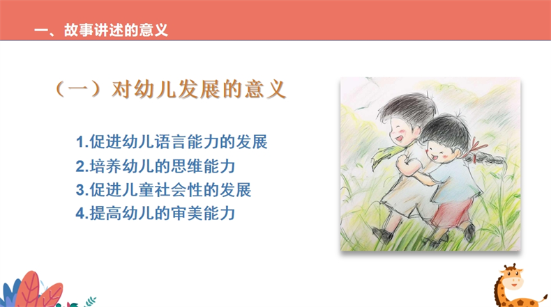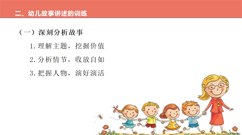 深刻分析故事即挖掘故事价值、分析情节发展、把握人物。在面对具有多元价值的故事材料时,教师在使用前要认真思考和分析,深入挖掘故事的多元价值,设计丰富多样的教学活动;分析与了解情节的发展阶段,达到在讲述时收放自如、引人入胜的效果;准确客观地想象出人物的形象,利用语言、动作等表达作者对人物的褒贬,展示人物复杂的心理活动,使人物起“活”来。