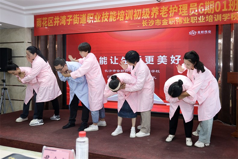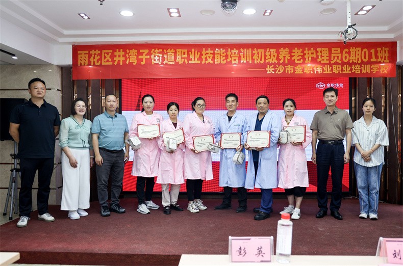 6月28日,由雨花区人社局主办,长沙市金职伟业职业培训学校与雨花区井湾子街道联合开设的雨花区井湾子街道职业技能培训初级养老护理员6期01班举行结业典礼。同时,为进一步促进学员就业,拓宽就业渠道,典礼同期举行了就业见面会。长沙市人力资源和社会保障局职业能力建设处、雨花区人社局就业服务中心相关负责人,金职伟业集团有限公司董事长彭英,长沙市金职伟业职业培训学校相关负责人出席典礼。