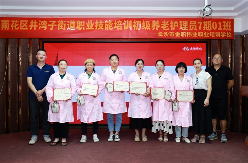 继上一期雨花区井湾子街道职业技能培训初级养老护理员班顺利结业后,7月12日,由雨花区人社局主办,长沙市金职伟业职业培训学校与雨花区井湾子街道联合开设的新一期雨花区井湾子街道职业技能培训初级养老护理员培训班迎来了结业典礼与就业见面会。长沙市金职伟业职业培训学校相关负责人、长沙市知名养老机构代表出席典礼。