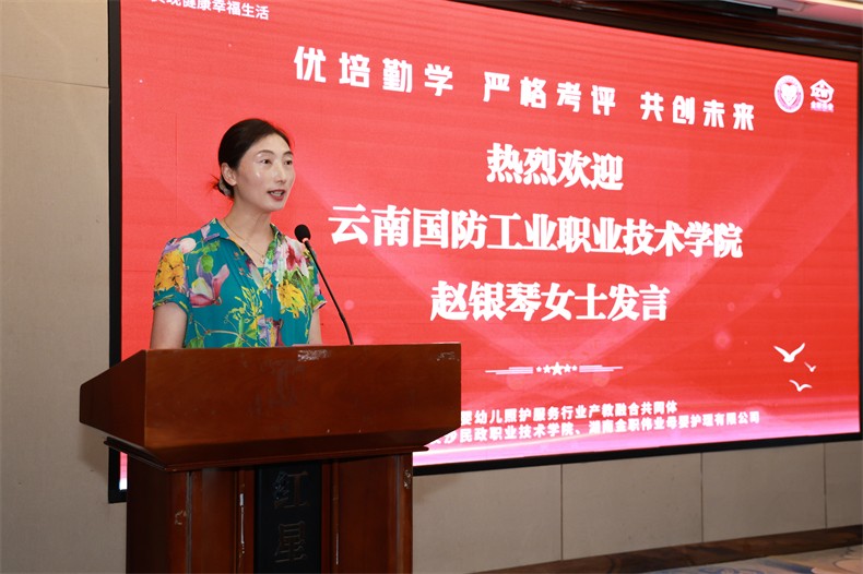 云南国防工业职业技术学院学员代表赵银琴向搭建培训平台的金职伟业及授课专家们表示衷心的感谢,并讲述了自己的学习初衷。“幼儿,是国家的未来,是民族的希望。他们的健康成长,离不开每个照护者的精心呵护与引导。幼儿照护师资及考评员培训不仅是我们提升专业素养、增强职业能力的有效途径,更是我们为孩子创造一个安全、健康、快乐的成长环境的必备条件。”她代表全体学员承诺:在培训期间,及时转变自己的角色,全身心投入培训;用饱满的热情、专注的态度认真学习,全面提升自身的教育教学能力。