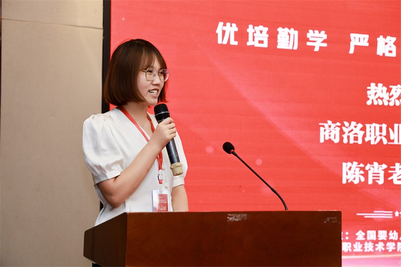 优秀学员代表商洛职业技术学院陈宵老师向金职伟业提供的学习机会表示感谢,并分享了自己的学习心得和体会。“回校后,我将把这次培训所学到的知识和技能,运用到实际的工作当中,不断地提高自己的教学水平和考评能力;同时,我也将积极地去传播幼儿照护的理念,为推动幼儿照护事业发展和培养综合性技能人才,贡献自己的绵薄之力。”