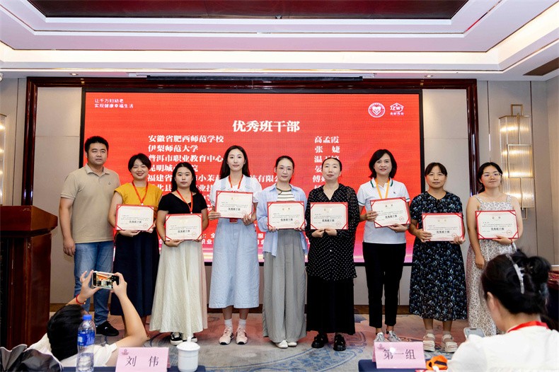 8月17日,1+X幼儿照护职业技能等级证书2024年第五期高级师资及考评员培训班顺利收官。金职伟业集团有限公司(以下简称“金职伟业”)总经理助理刘伟出席结业典礼,向圆满完成培训任务的81名老师表示祝贺。