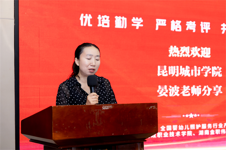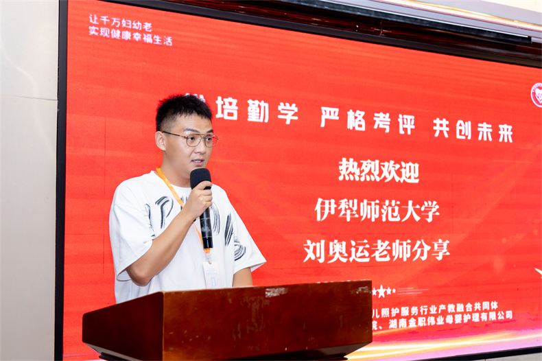 伊犁师范大学刘奥运老师作为优秀学员代表作分享。“在培训过程当中,我深刻感受到了团队合作的力量。我们来自不同的地方,有着不同的背景和经历,在这里我们共同学习,共同进步,形成了一个温馨和谐的学习集体。作为幼儿照护行业的教师,我们将把所有的知识和技能运用到实际工作当中去,继续努力学习,不断进步,不断提升自己的专业素养和专业能力,持续推动1+X证书制度试点工作。”
