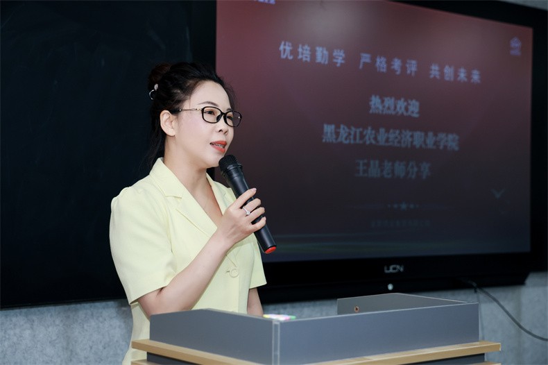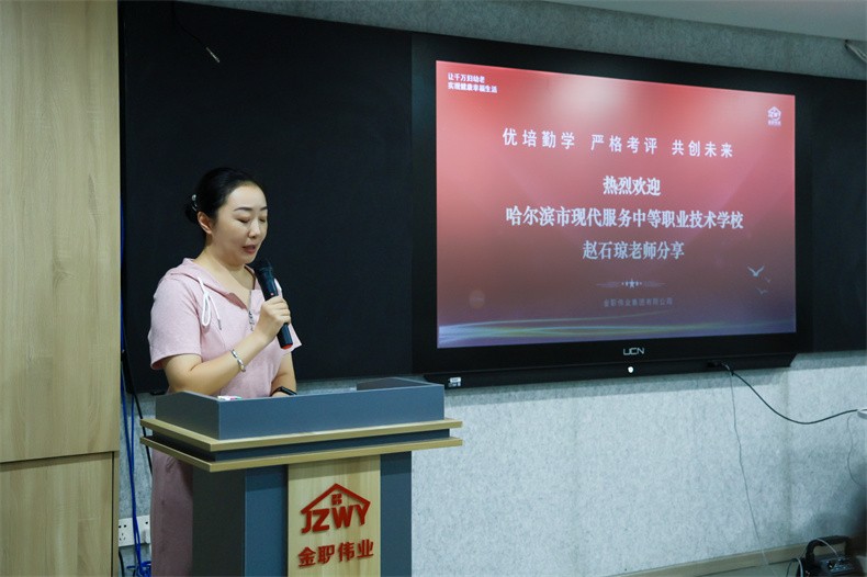 黑龙江农业经济职业学院王晶老师作为学员代表分享培训体会。“28天的培训,从产教融合到岗课赛证融通的学习,我们与企业同频共振,学有所感、学有所悟;在托育岗位的实践,提升了我们的专业课程实施能力和岗位实践能力,学有所成、学有所获。”王晶老师感谢金职伟业提供的难能可贵的学习机会,也感谢教师同仁们的躬身入局、勤奋学习,并呼吁全体教师不忘初心,继续在职业教育的广阔天地中播种希望,收获未来。