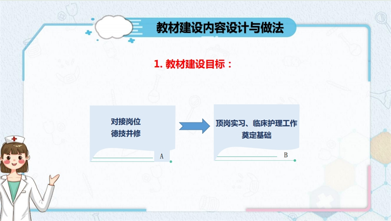 高正春教授认为,医学相关专业教材建设的内容设计应对接岗位,以培养德技并修、适应相关岗位工作的专业人才为建设目标。在教材编写的具体举措上,她谈到,一方面要重构教学内容,做到教材深入“内”化。首先明确“项目任务式”教材建设路径,其次将儿科护理专业知识与典型工作任务相融合,最后则是将理论知识“化整为零”,融入不同的项目、任务中。另一方面,则要将重构的教材内容向学生立体化呈现,做到教材丰富“外” 显。以实际项目为载体、具体任务为导向,详细展示任务全流程,并充分利用信息技术,提供“线上线下”混合式学习资源。