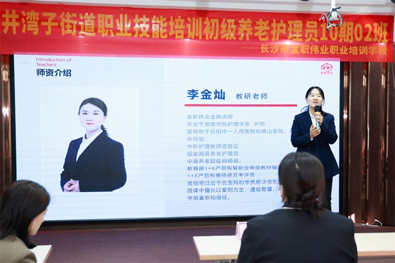 10月23日,由雨花区人社局主办,长沙市金职伟业职业培训学校与雨花区井湾子街道联合开设的雨花区井湾子街道职业技能培训初级养老护理员10期02班开班典礼成功举办。长沙市金职伟业职业培训学校校长苏琼,教研老师李金灿出席典礼。