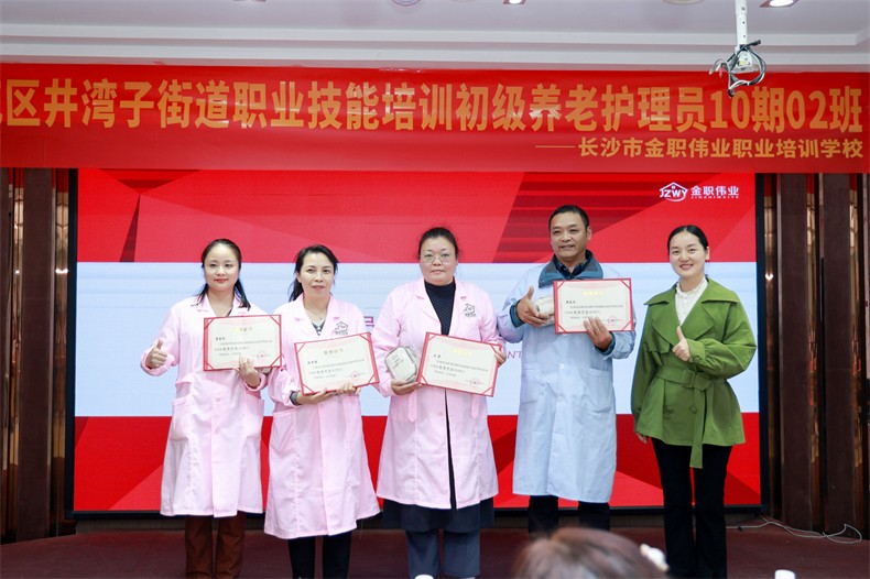 11月1日,雨花区井湾子街道职业技能培训初级养老护理员10期02班结业典礼成功举办。长沙市金职伟业职业培训学校副校长李丹丹、讲师蒋琴出席典礼。参训学员们齐聚一堂,共同回顾学习旅程的点点滴滴,共庆顺利结业。