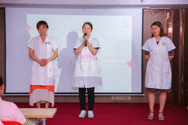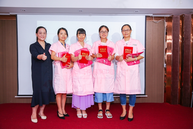 随后,母婴保健高级讲师鲁赛艳老师、母乳喂养指导高级讲师李金灿老师、产后康复高级讲师王琳老师分别致辞。其中,王琳老师慷慨激昂地讲道:“既然选择了从事健康行业,那就必须要为客户健康负责!”掷地有声的话语赢得了学员的掌声,产后康复班学员还将精心准备的鲜花献给了王老师。