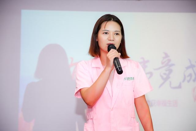 接着,来自重庆的黄宇走上台进行自我介绍。她是一名瑜伽教练,工作跟产后康复方面有一点关联,但没那么专业,所以她想学一些专业方面的知识,掌握更多专业技能,融合到她之前的工作中,以此帮助更多需要帮助的人。