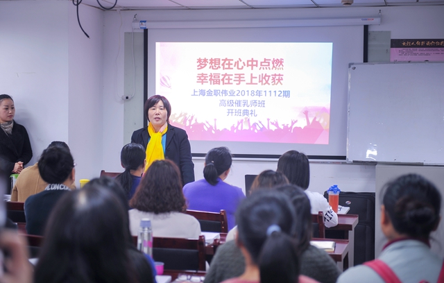 “很多学员是从外地坐火车,千里迢迢来到上海学习的,你们抱着巨大的学习热情。上海金职伟业一定不辜负你们的这份信任,给大家提供优质的培训课程。除了母乳喂养指导师课程,我们还有产后康复师、小儿推拿师等母婴服务技能必备课程。”
