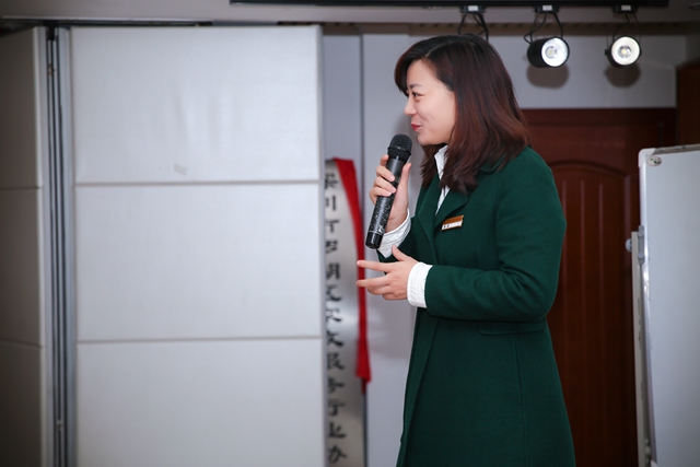 金职伟业职业培训学校校长陈波女士出席此次开班并致辞。她首先介绍了行业前景,希望学员能紧抓机遇,好好学习,创造自己的事业。作为心理咨询师的陈波校长也带领学员们展开了一个特殊环节。