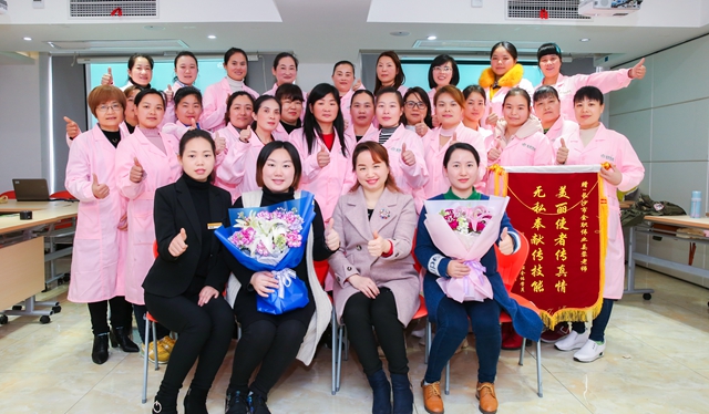随后,学员献上了为姜蓉老师精心准备的惊喜,一首《再见》、一支独舞、一捧鲜花、一面锦旗,锦旗上书“美丽使者传真情,无私奉献传技能”。尊师重教,短短四字重如千钧,她们身体力行的表达对老师的感谢。