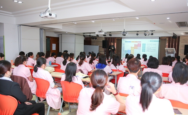 “我来自山西临汾”、“我来自江西萍乡”……来自五湖四海的学员纷纷主动上台分享学习初衷。此次班级中还有一位怀孕7个月的准妈妈,她叫陈燕飞,为了护理好自己的宝宝来学习。听完她的分享后,学员们纷纷为这位孕妈妈竖起大拇指。