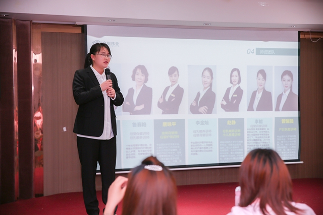 金职伟业运营总监黄娟首先介绍了自身从业经验,从国企辞职后一直从事教育事业,希望学员如她一样坚定在母婴行业,之后她学员介绍了母婴行业的市场前景二胎政策的开放加上人口老龄化的社会结构,让母婴行业的优势凸显,并表示金职伟业作为湖南省产后康复服务标准制定单位,拥有自己研发的教程以及专业的课程体系。最后她希望学员们都在金职伟业收获专业技能,在母婴行业实现人生价值。