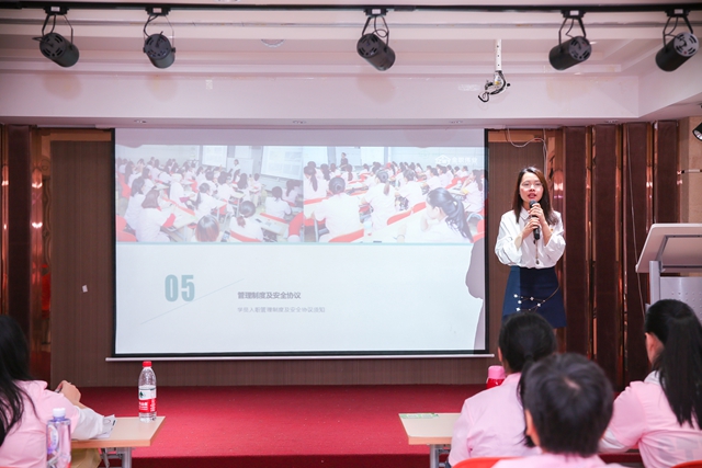 在主讲老师介绍完相关课程安排后,教务班主任刘青青老师则为大家介绍教务制度,希望学员能够遵守制度,营造融洽的学习氛围。