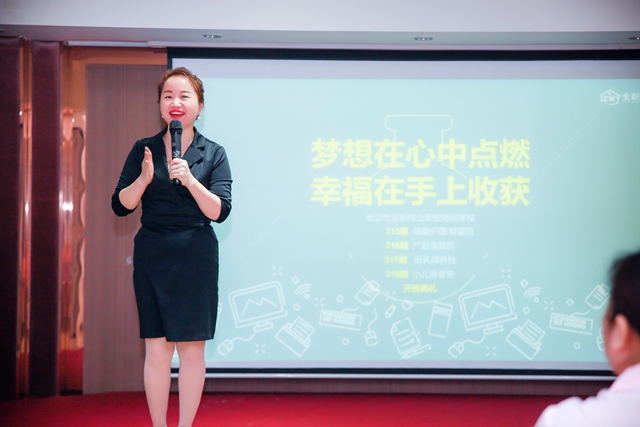 6月11日上午,在长沙金职伟业职业培训学校创业孵化基地,举行了315期月嫂、316期产后康复师、317期催乳师、318期小儿推拿师班开班典礼,四班同开,场面热闹非凡。
