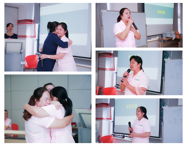 见此情景,班主任熊老师提议学员们拥抱身边的同学老师。学员们深情拥抱,回忆起过往的点点滴滴,眼眶湿润,即便如此脸上也充满着幸福的笑容,因为此次的离别标志着她们正式踏入了母婴行业。