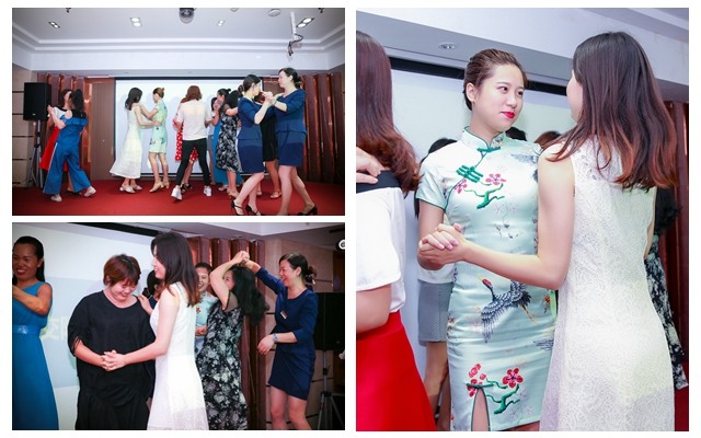紧接着,学员们展示了曾醒晨老师教的交际舞,学员们各自找到自己的舞伴,随着音乐的响起,跟随节奏开始舞动。原本老师们在台下静静欣赏,在学员们的拥簇下,老师们也来到舞台上与学员一起舞蹈,结业典礼也随之达到高潮。